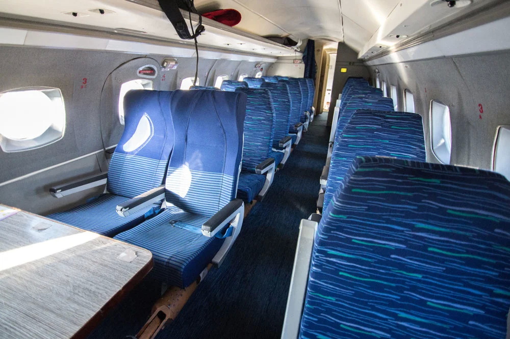 Tényleg ketten utaztunk, de volt ott pilóta, másodpilóta, fedélzeti mérnök és két stewardess, talán még vécésnéni is, szóval nem kongott a gép az ürességtől. Mondták, hogy bárhova ülhetek.